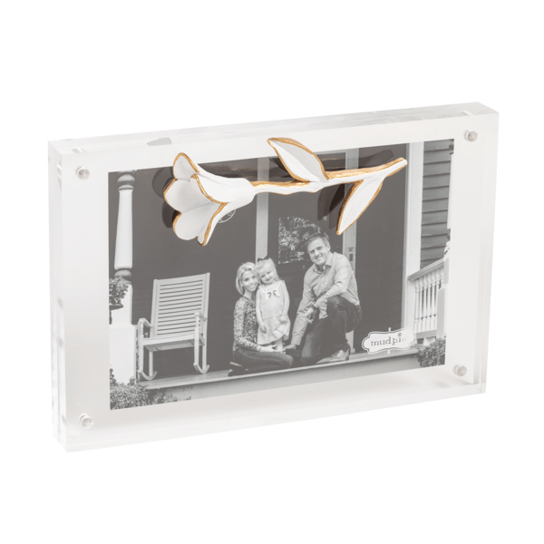 Flower Icon Acrylic Frame is a stunning addition to any home or office decor. This acrylic block frame boasts a sleek, modern design with a magnetic construction that securely holds your cherished memories. The frame is adorned with a beautifully hand-painted resin flower, adding a touch of elegance and artistry to your space. Perfectly sized to display a 4" x 6" photo, the frame itself measures 7 1/2" x 5", making it an ideal fit for desks, shelves, or mantels. Crafted from high-quality acrylic, this frame offers durability and a crystal-clear view of your favorite pictures, ensuring they remain the focal point. Whether you're looking to showcase a special moment or give a thoughtful gift, the Flower Icon Acrylic Frame is a versatile and stylish choice.