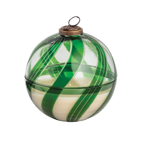 The Green Candy Cane Glass Candle is a delightful addition to any home decor, offering both aesthetic charm and a soothing aroma. This uniquely designed candle is crafted in the shape of a classic candy cane, adding a festive touch to your space. The glass ornament not only enhances its visual appeal but also ensures safety and durability. The candle comes with a convenient lid, allowing you to preserve its fragrance when not in use. Infused with the rich and earthy scent of Smoked Cedar, it creates a warm and inviting atmosphere, perfect for relaxation or entertaining guests. With a diameter of 5 inches, this candle is an ideal centerpiece for your table or mantel, providing hours of aromatic enjoyment. Whether you're looking to enhance your holiday decor or simply enjoy the comforting scent of cedar, this candle is a perfect choice.