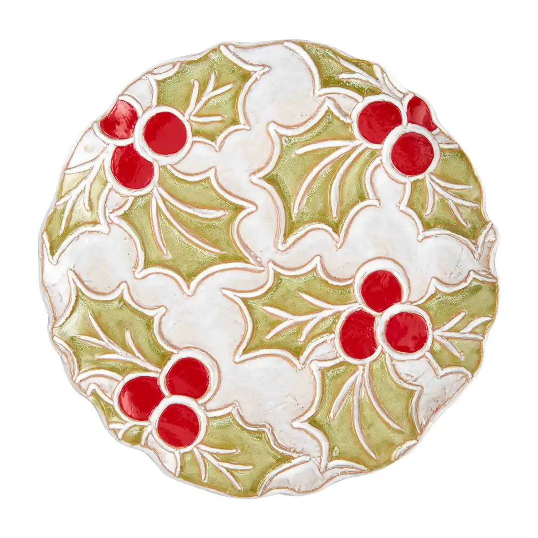 Capture the essence of nostalgia with our Holly Salad Plate. Crafted from durable stoneware, this 8" diameter plate showcases delightful textured details and a vibrant Christmas image, making it perfect for hosting holiday dinners. Dishwasher and microwave safe, it offers convenience and style. Mix and match with other designs to create a festive table setting that will transport you to cherished memories.