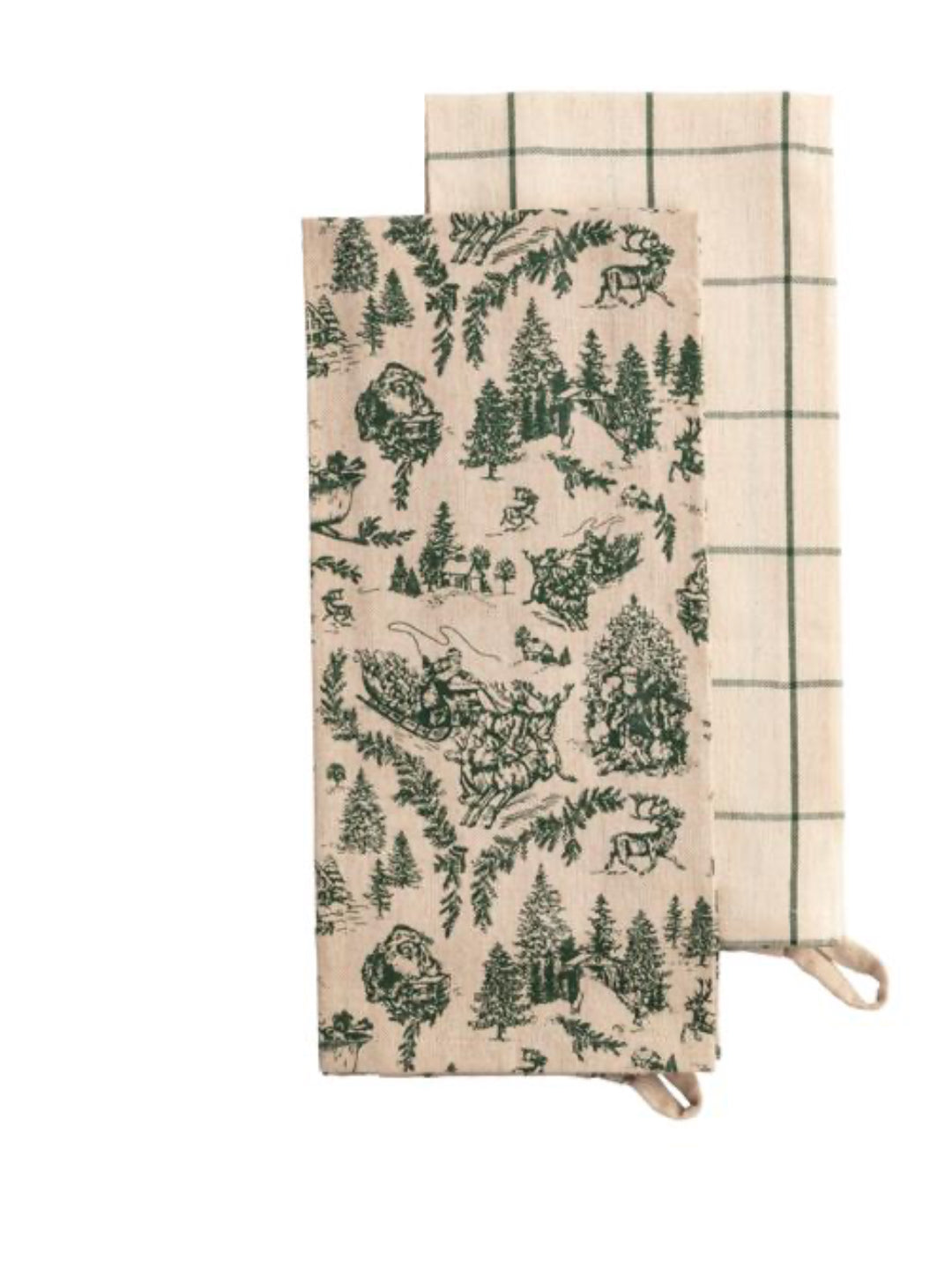Toile Christmas Towel Set features a charming and festive design, perfect for adding a touch of holiday spirit to your kitchen or bathroom. Each set includes two beautifully patterned chambray towels, crafted from 100% cotton for a soft and absorbent texture. Measuring 26" x 16 1/2", these towels are ideal for drying dishes, hands, or simply enhancing your seasonal decor. The intricate toile pattern showcases classic holiday motifs, making them a delightful addition to your home or a thoughtful gift for loved ones. Durable and easy to care for, these towels combine functionality with elegant style, ensuring they remain a staple in your holiday collection for years to come.