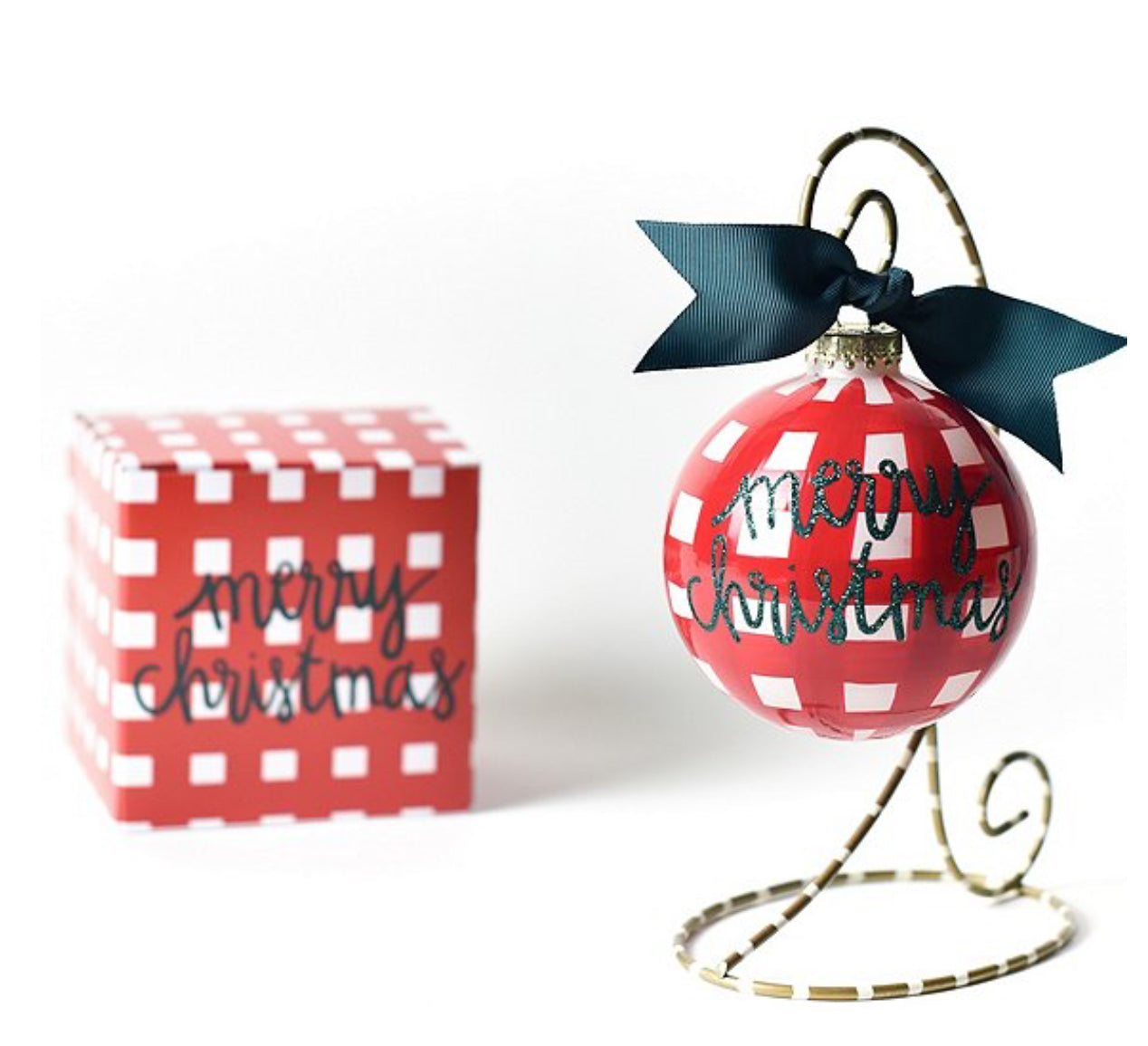 Merry Christmas Red Gingham Ornament Boxed