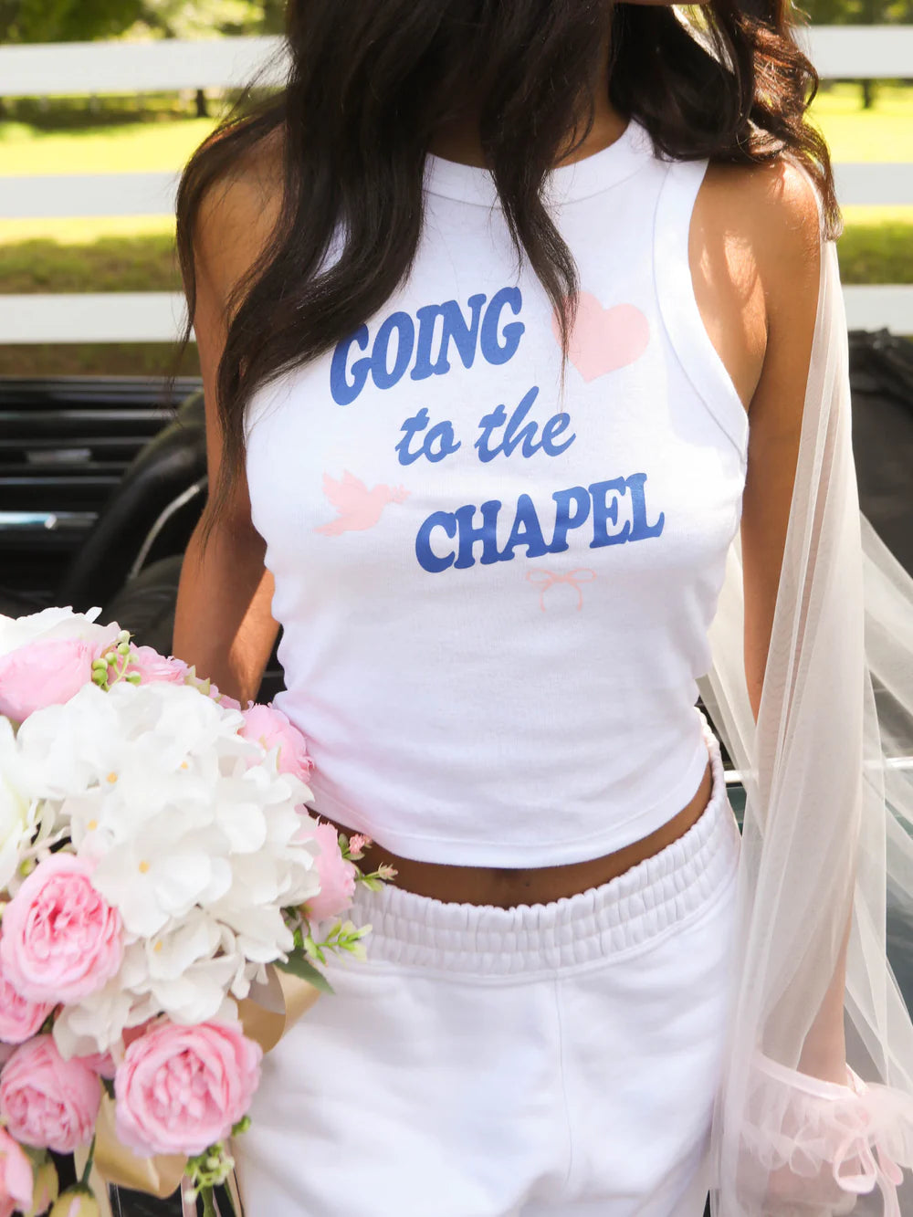 Meet the Going to the Chapel Sweatshirt's little sister, the Going to the Chapel Tank! This baby tank is going to be the new one to beat with the same iconic, original graphic of the sweatshirt, this tank pairs perfectly with the matching sweatpants, too. Make it a trio option with the sweatshirt, too.