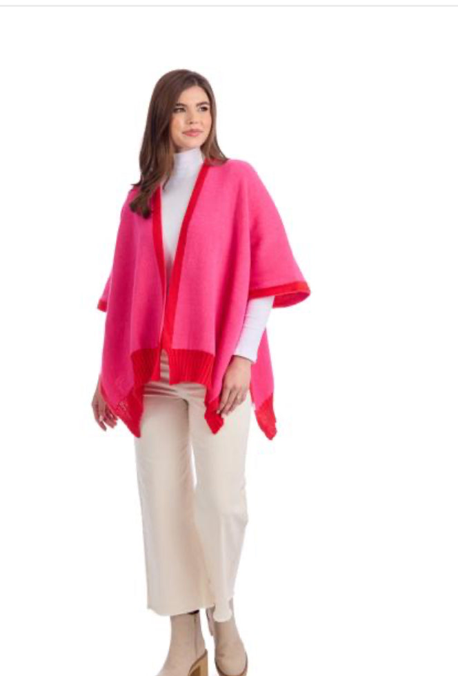 The Bringham Reversible Poncho offers versatile style and comfort, perfect for any occasion. Crafted from 100% polyester, this knit poncho features a chic contrast trim and a ribbed hem, adding a touch of elegance to your outfit. Its reversible design allows you to effortlessly switch up your look, making it a practical addition to your wardrobe. With a one-size-fits-most design, it provides a comfortable fit for various body types. Measuring approximately 27 inches from shoulder to hem, it drapes beautifully, providing both warmth and style. Ideal for layering, this poncho is a must-have accessory for any fashion-forward individual.