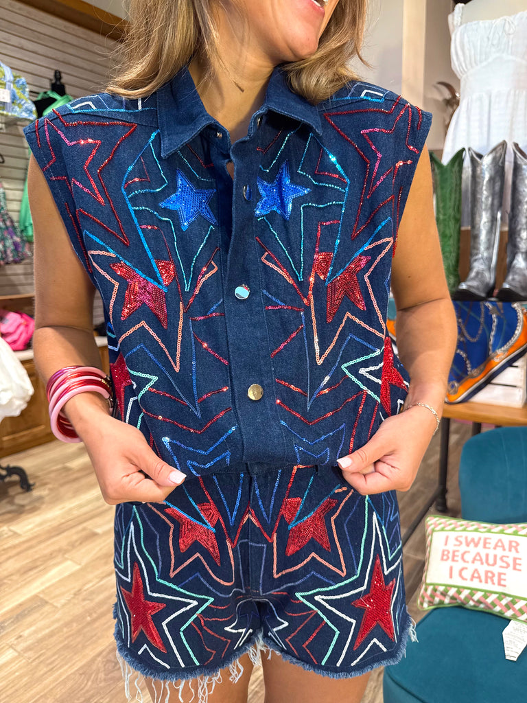 Blue & White Gingham Scattered Magnolia Button Up Top