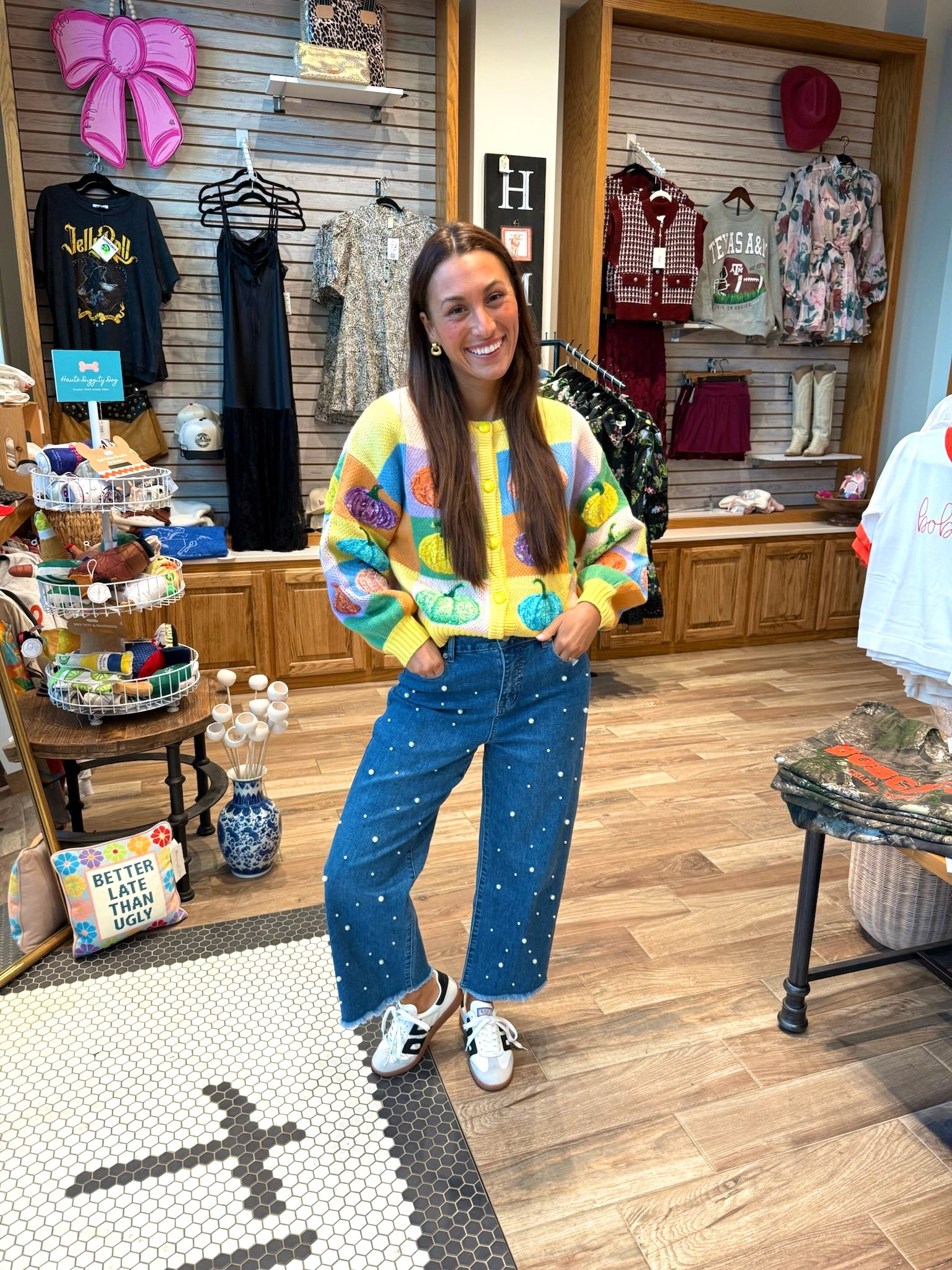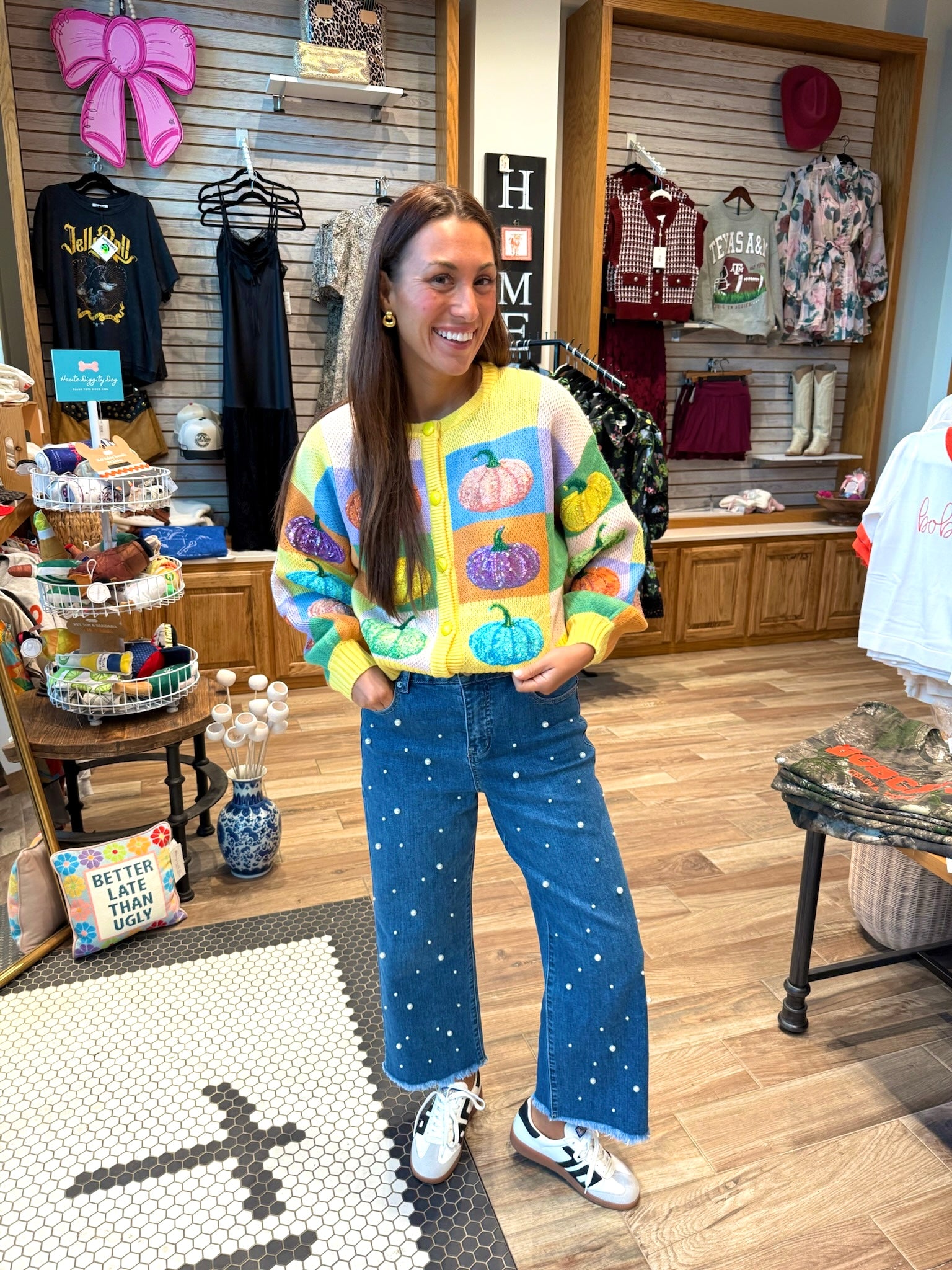 Embrace cozy charm with the Pastel Colorblock Pumpkin Button Up Cardigan! Featuring soft pastel hues and a playful pumpkin-inspired button design, this cardigan adds a fun twist to any outfit. Perfect for layering on crisp days, it brings warmth and whimsy together for a look that’s as comfy as it is cute.