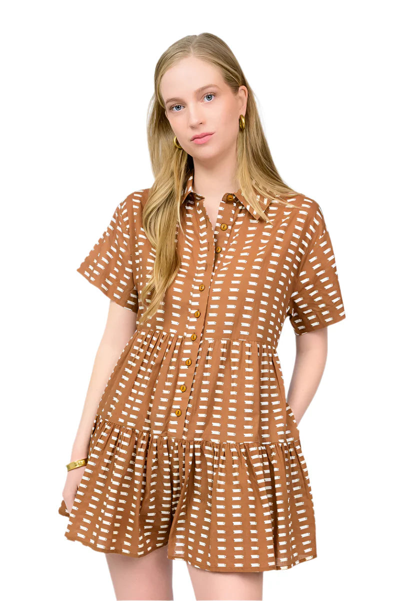 Experience comfort and charm with the Uncle Frank By Ivy Jane Coffee Print Romper in Copper. Crafted from 100% cotton with a lined romper skirt and convenient pockets, it offers breathable wear and practical style. The whimsical coffee-themed print adds a playful touch, while easy-care instructions make maintenance simple—just machine wash cold on gentle cycle, tumble dry low, no bleach, and low iron as needed. Perfect for effortless, everyday elegance.