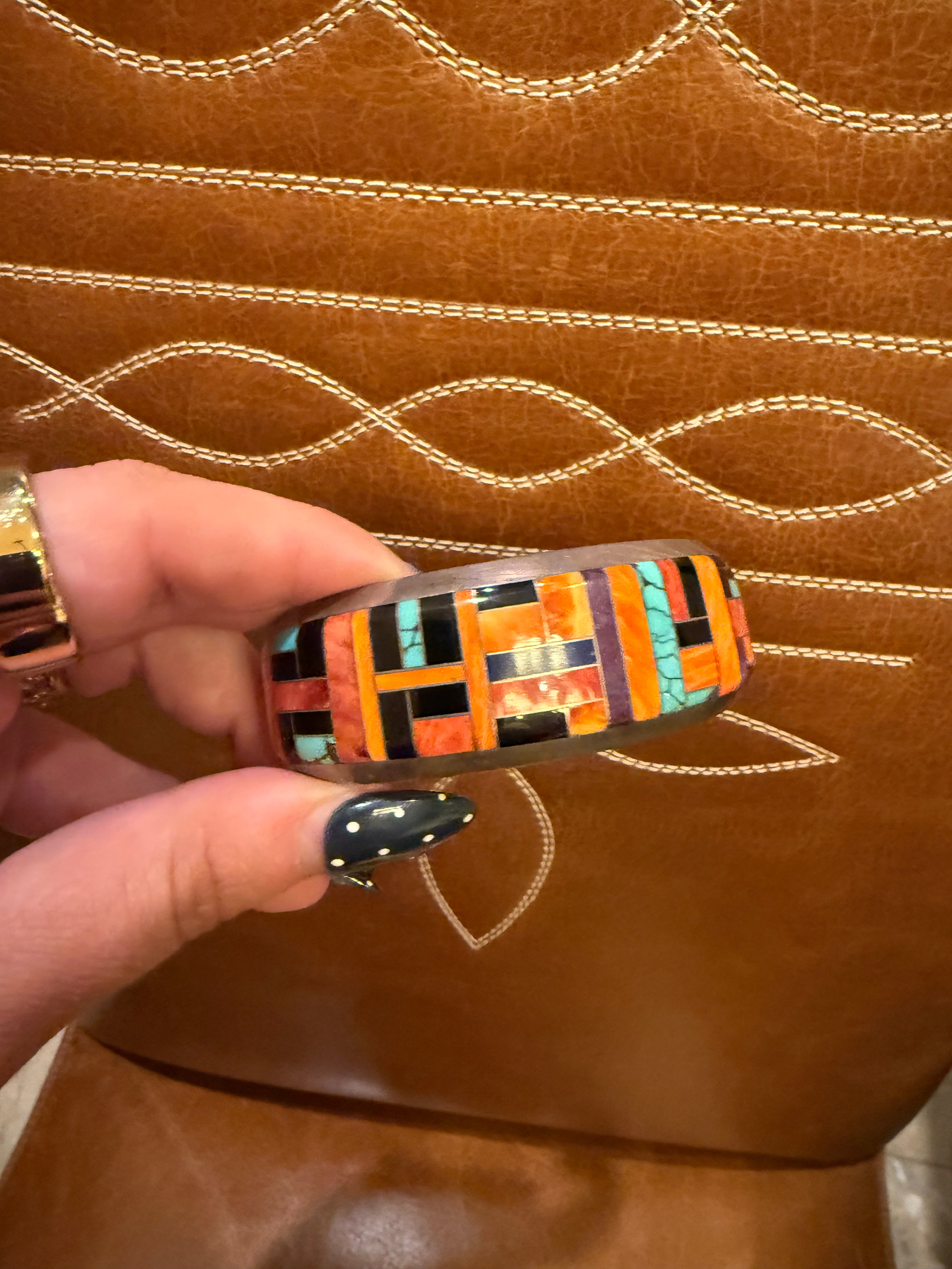 - red and orange spiny oyster, purole spiny, onyx, lapis,a nd turquoise inlay