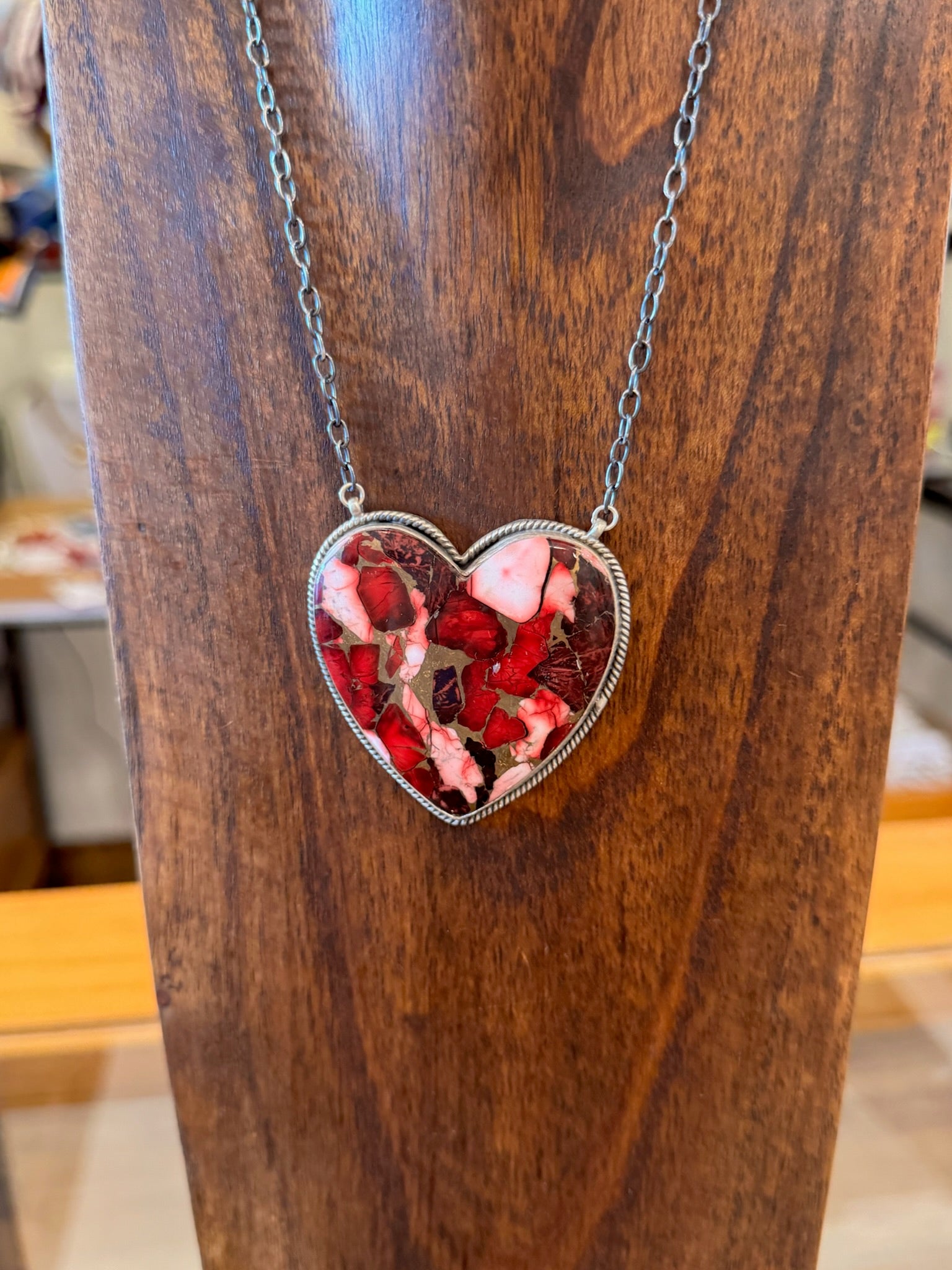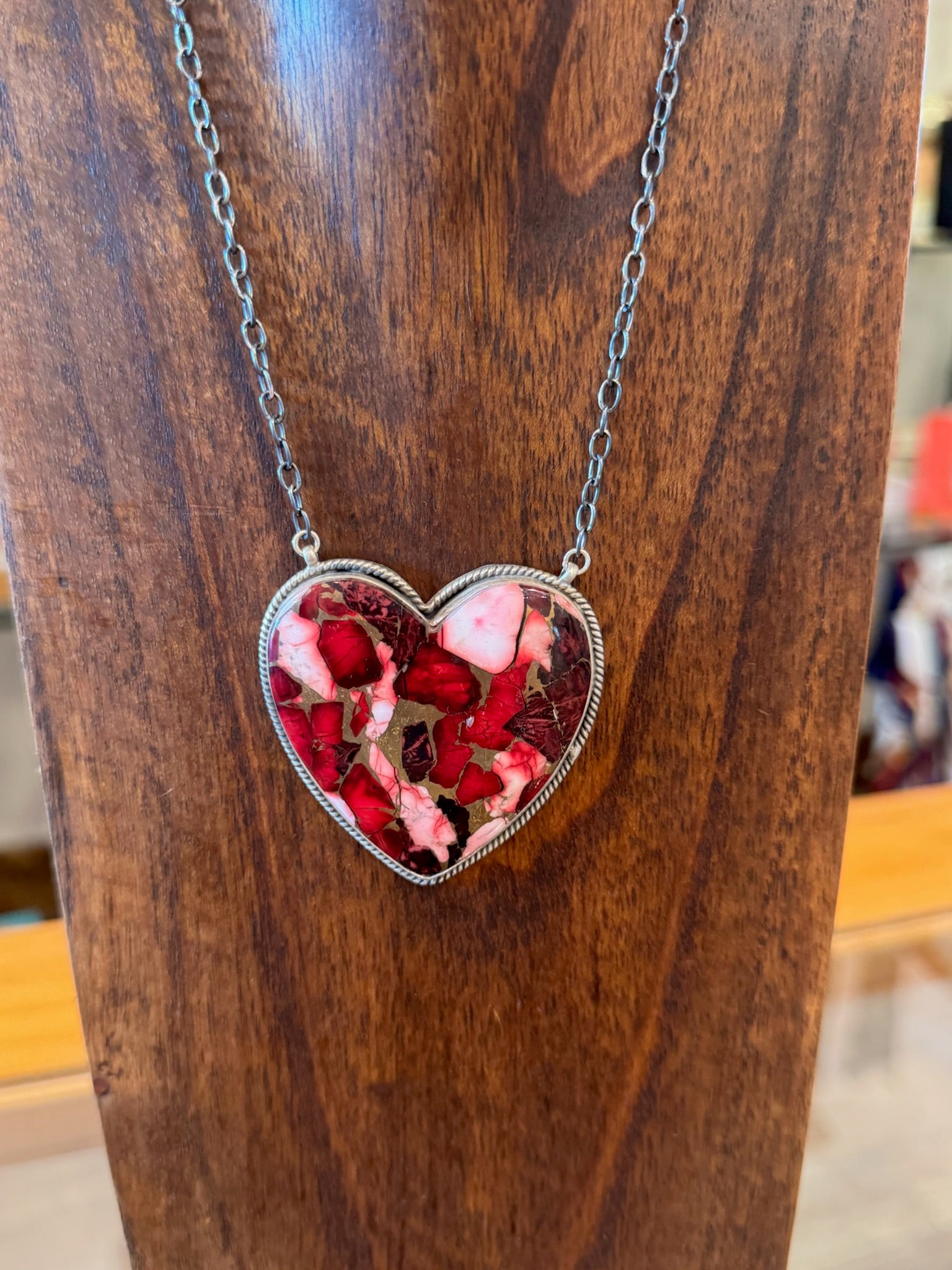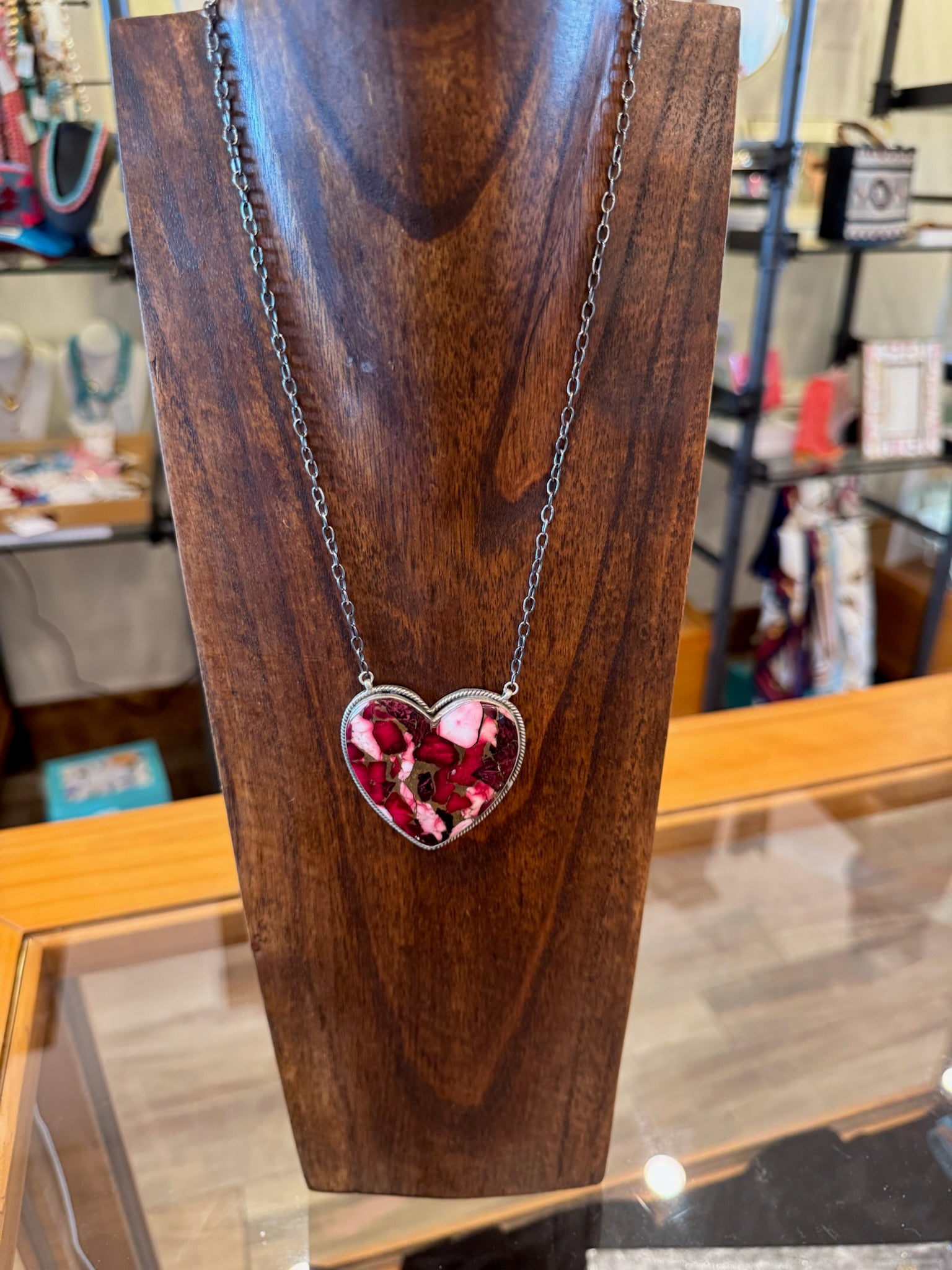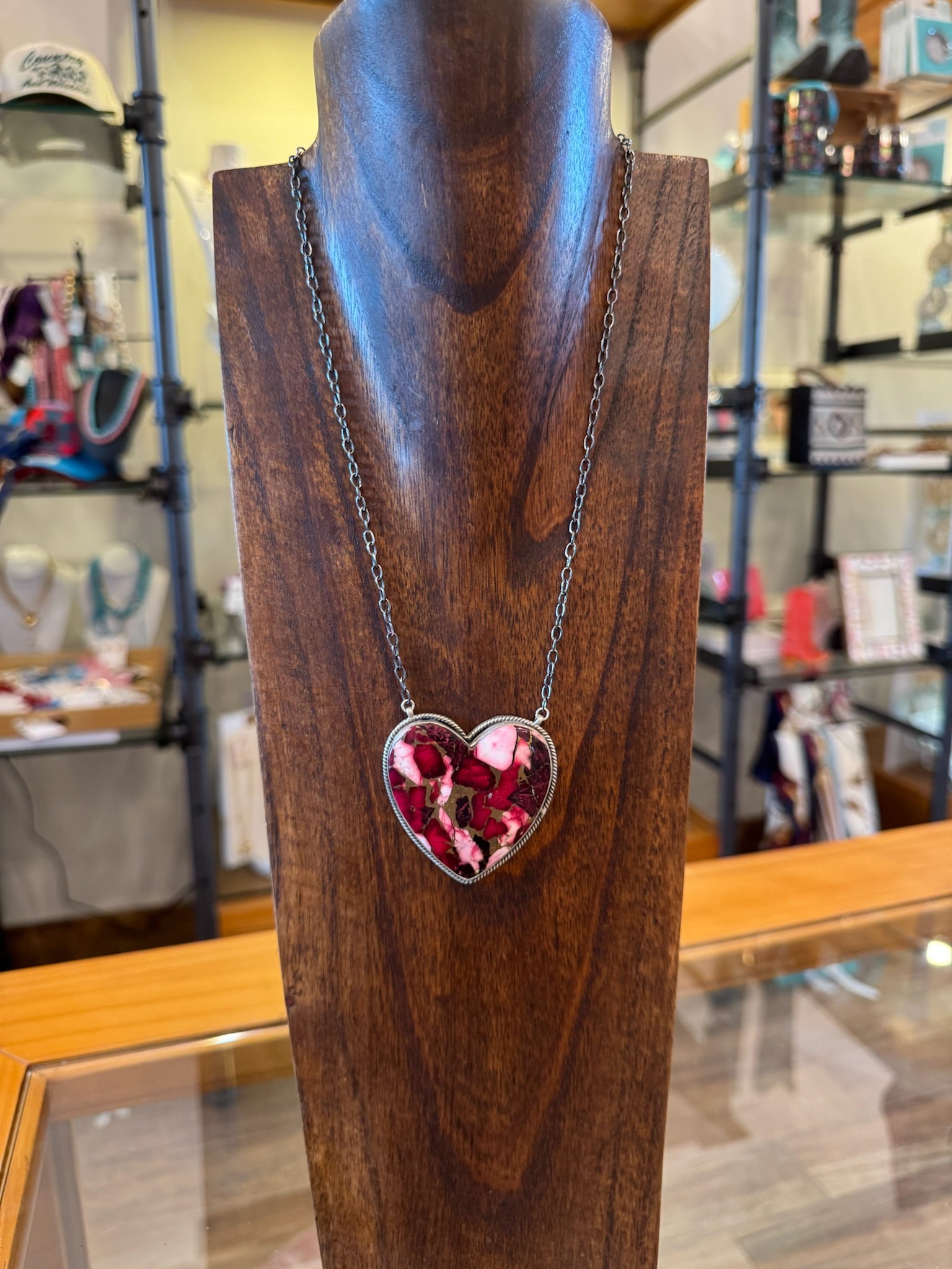 Hada Collection Rose Dahlia Heart Necklace on sterling silver