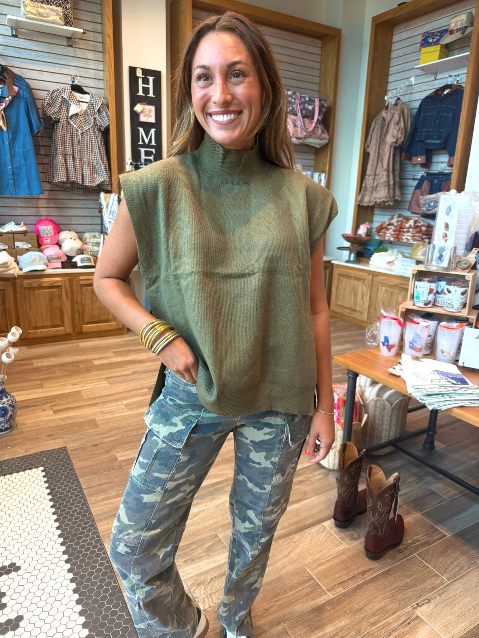 The blythe top is the best basic for your fall wadrobe! With a statement shoulder and a mock neckline and a split hem on the side