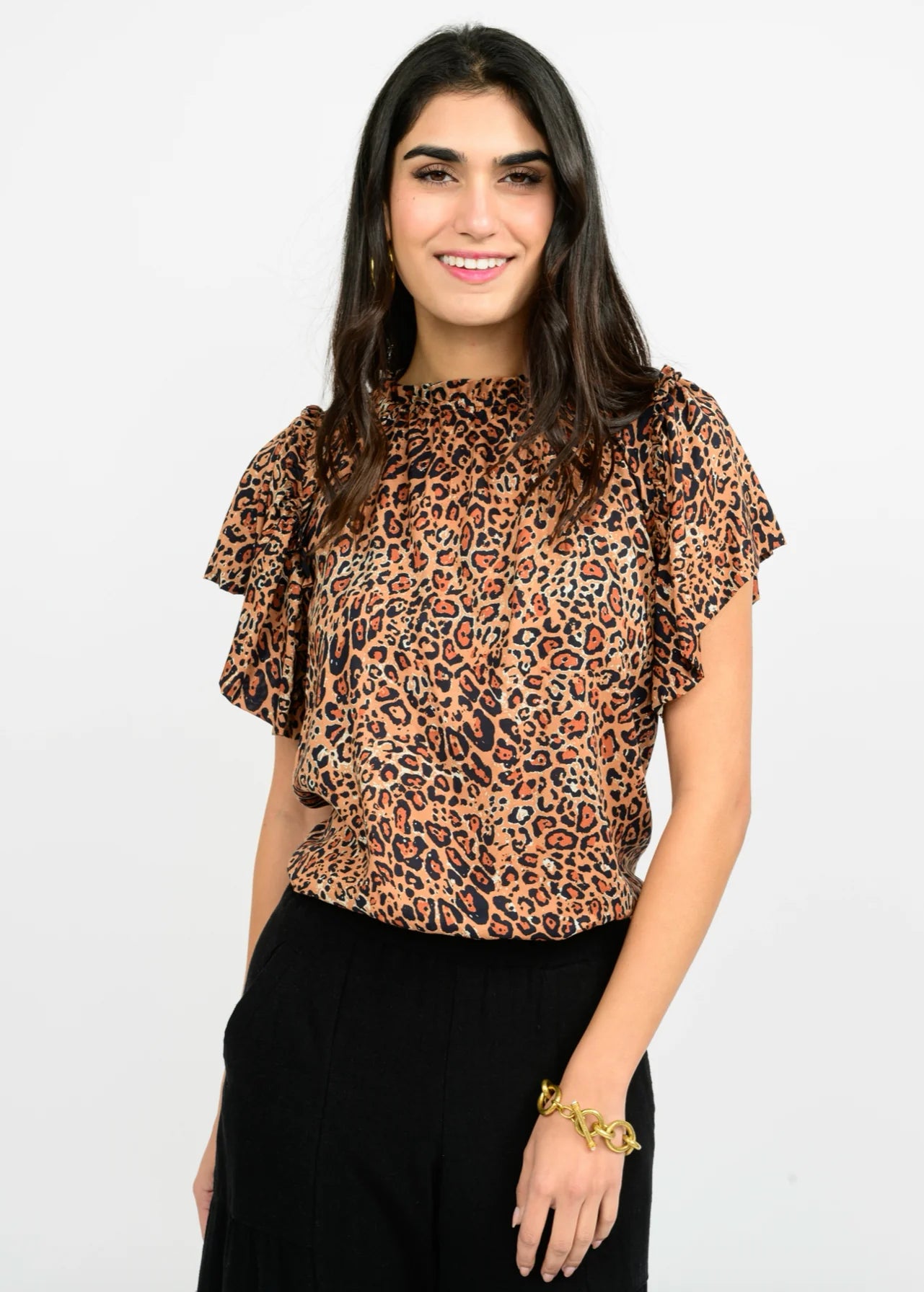 Add a wild touch to your wardrobe with the Ivy Jane Leopard Flounce Top Blouse. Featuring bold leopard print and playful statement short sleeves, this blouse is perfect for turning heads on a girls' day out or adding flair to your office look. Its fun design brings confidence and style wherever you go.