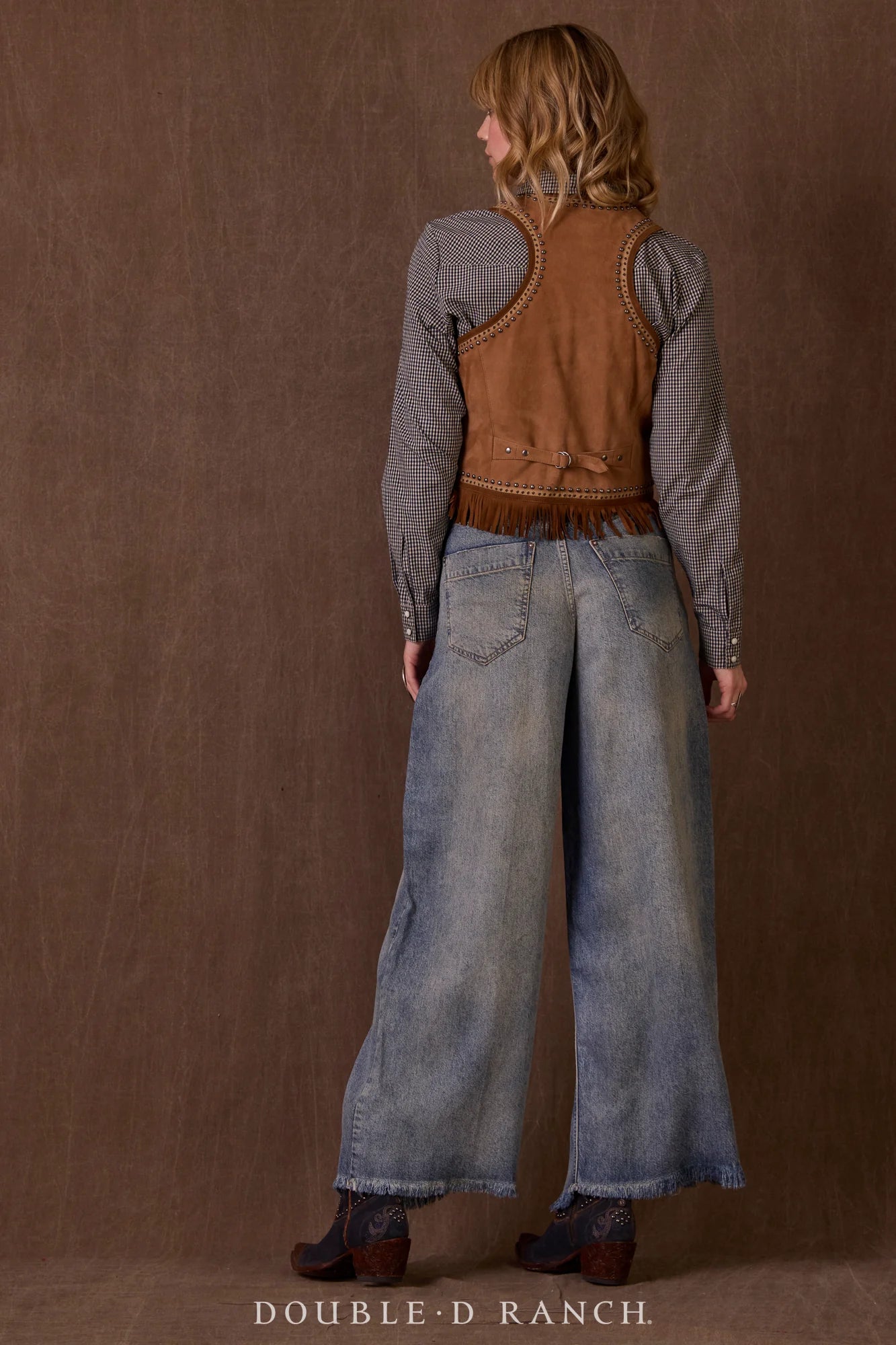 This goat suede vest is bringing all the beading and beauty with just the right touch of Texas twang! It’s embellished with fringed trim and tasseled concho accents, and the warm “tumbleweed” brown is a perfect canvas for the floral embellishments, studding, and that pair of trusty longhorns front and center. We designed it for all cowgirls, but we imagine we’ll be spying it around a particular stadium this season.