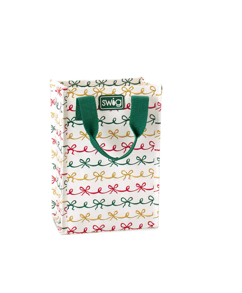 Swig Life's Reusable Bags are perfect for all of life's celebrations; birthdays, weddings, and holiday parties, and are a go-to favorite for everyday use. This tall reusable bag is ideal for medium-sized gifts, like slippers or gloves and scarves, and can be used to gift our Mega Mugs and accessories. Pack this for girl's night; it fits two wine bottles and two Stemless Wine Cups!
