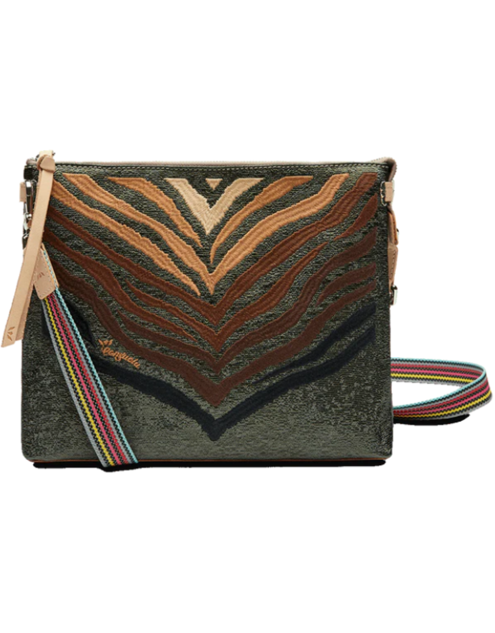 The Consuela Downtown Crossbody, Slash is a sleek crossbody that’s ready to take on the day with an adjustable strap and two interior pockets. The pattern on this bag is gorgeous and just right for the one with a love for animal prints! Made with a roomy open interior, the Downtown Crossbody can carry the essentials and more. Zipper closure and interior slide pocket. It has a NEW clip-on adjustable and removable woven strap. It has a natural untreated leather trim and a Sophie ConsuelaCloth exterior.