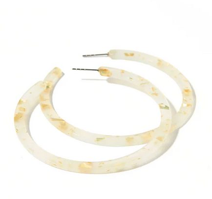 The Holly hoop is a larger size hoop measuring 65mm. It is light-weight, waterproof and easily matches everything in your closet.