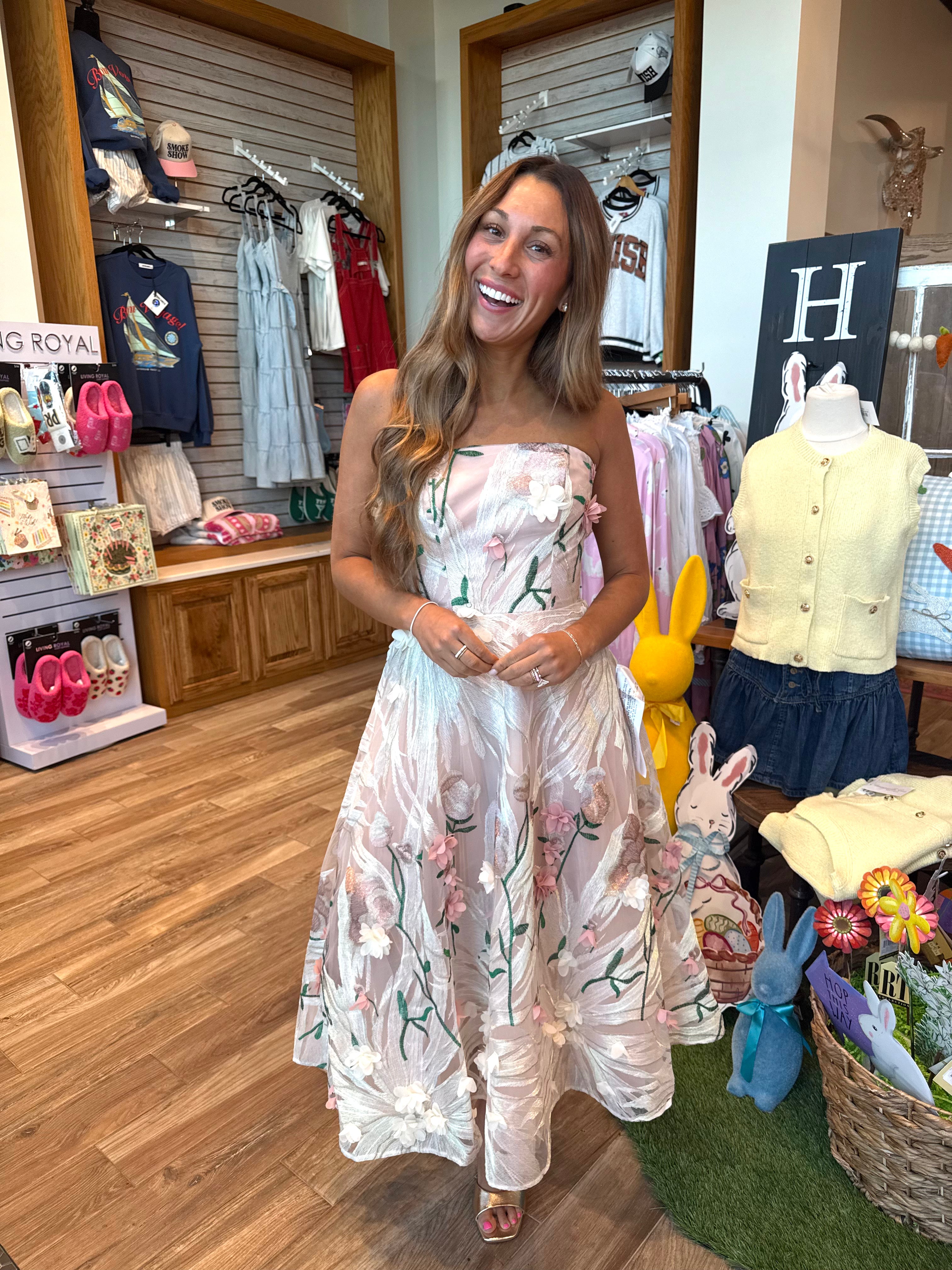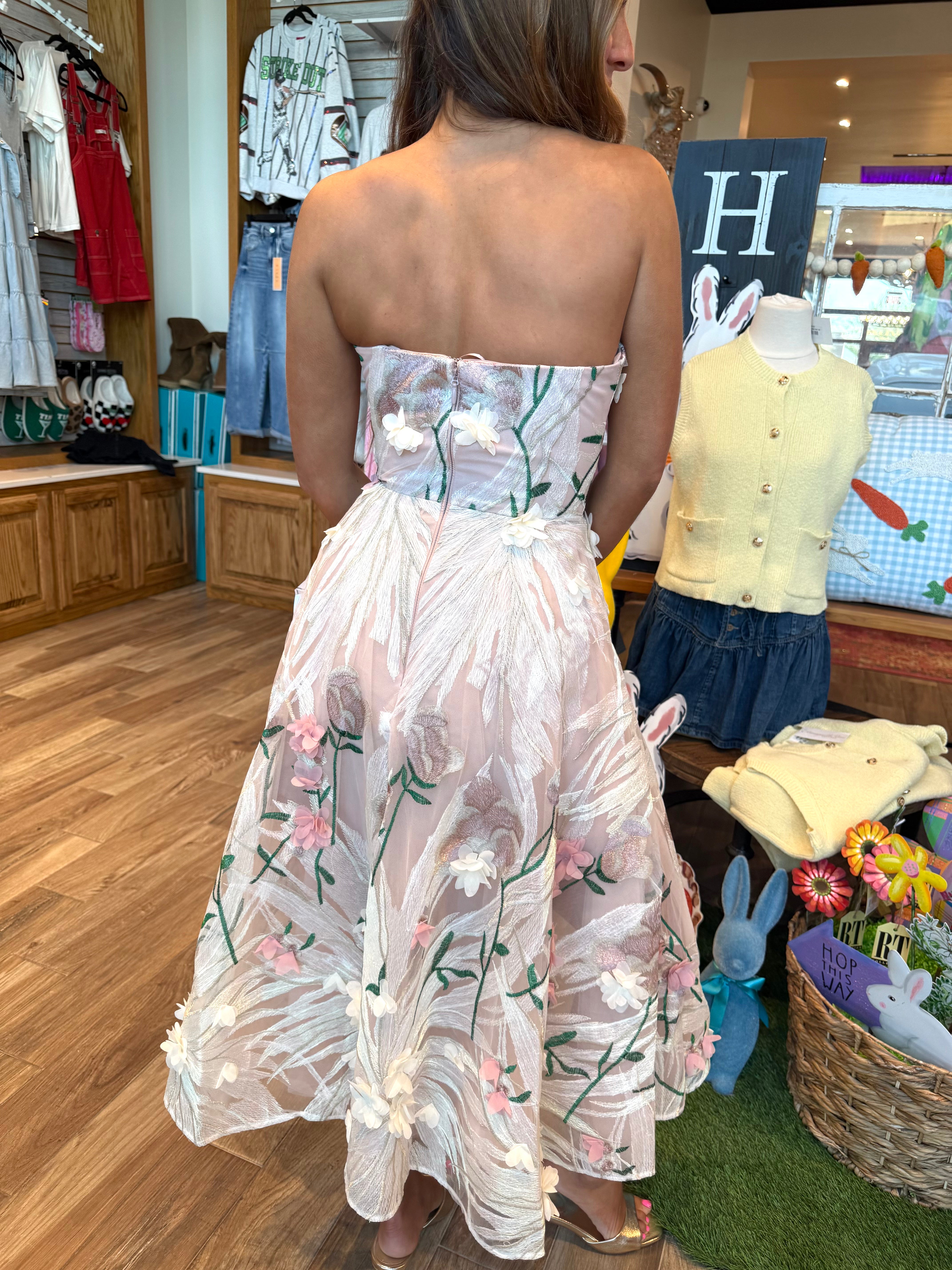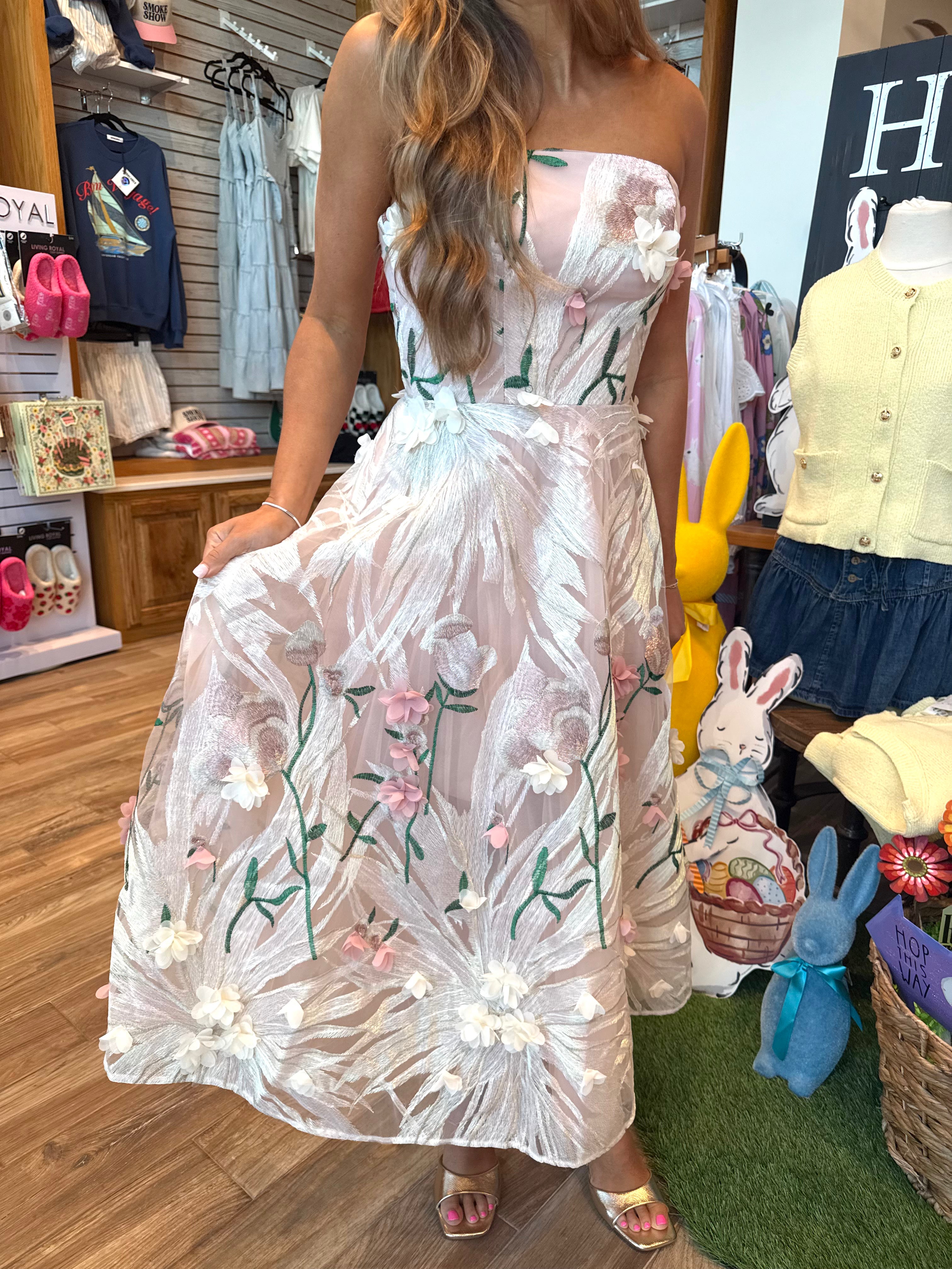 Make a statement with the Kailyn Dress. This strapless bustier fit and flare midi dress exudes elegance and sophistication. Crafted with attention to detail, this dress hugs your curves in all the right places and flares out beautifully, creating a timeless silhouette.