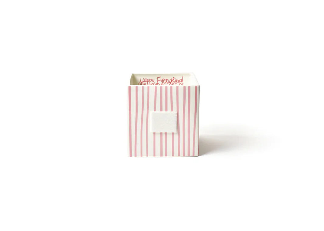 Transform any space with our Happy Everything Pink Stripe Medium Mini Nesting Cube! Created in-house, the white and pink stripes create an artsy, hand-drawn vibe. Utilize it as a tray or planter and decorate with your preferred Mini Attachments to craft a unique look! Order this giftable and practical Mini Base now. Material: Ceramic Dimensions: 5.5in L x 5.5in W x 5.5in H Volume: Medium Care Instructions: Wipe Clean