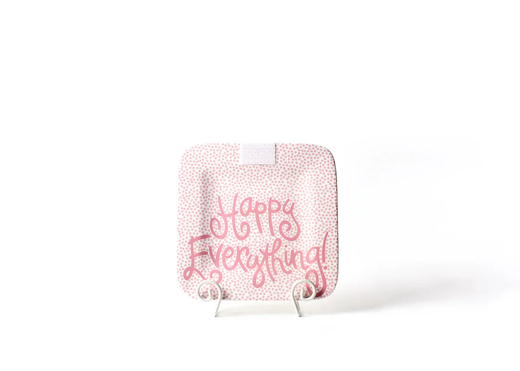 A contemporary yet neutral stripe design done the happy way. The Brand New Pink Dot Happy Everything! 9.25 Mini Platter brings big style into the smallest of spaces. Create a happy and celebratory environment each and every day by simply attaching over 72 Mini Attachment options with the secured Velcro strip. The square ceramic mini platter will help you find a little happy in everything.