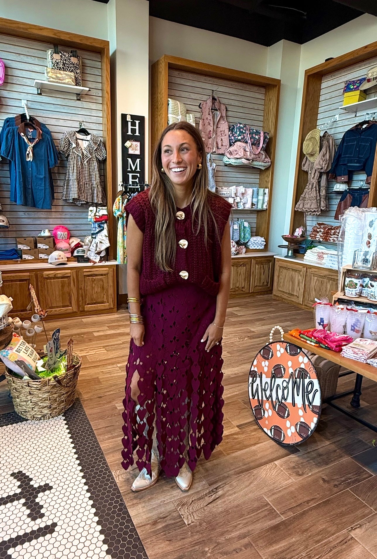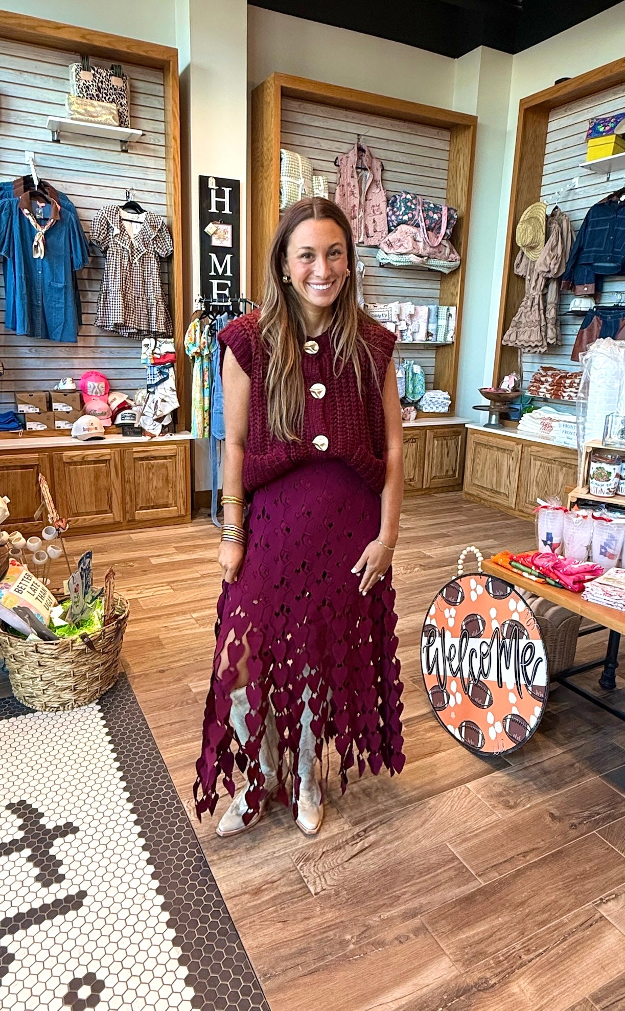 A fun pop to dress up every outfit! The Raleigh maroon skirt pairs perfectly with a blouse to dress this skirt up or throw her on with a fun t shirt and sneaker for a dressed down street style look! This skirt runs true to size and the fabric has no stretch!