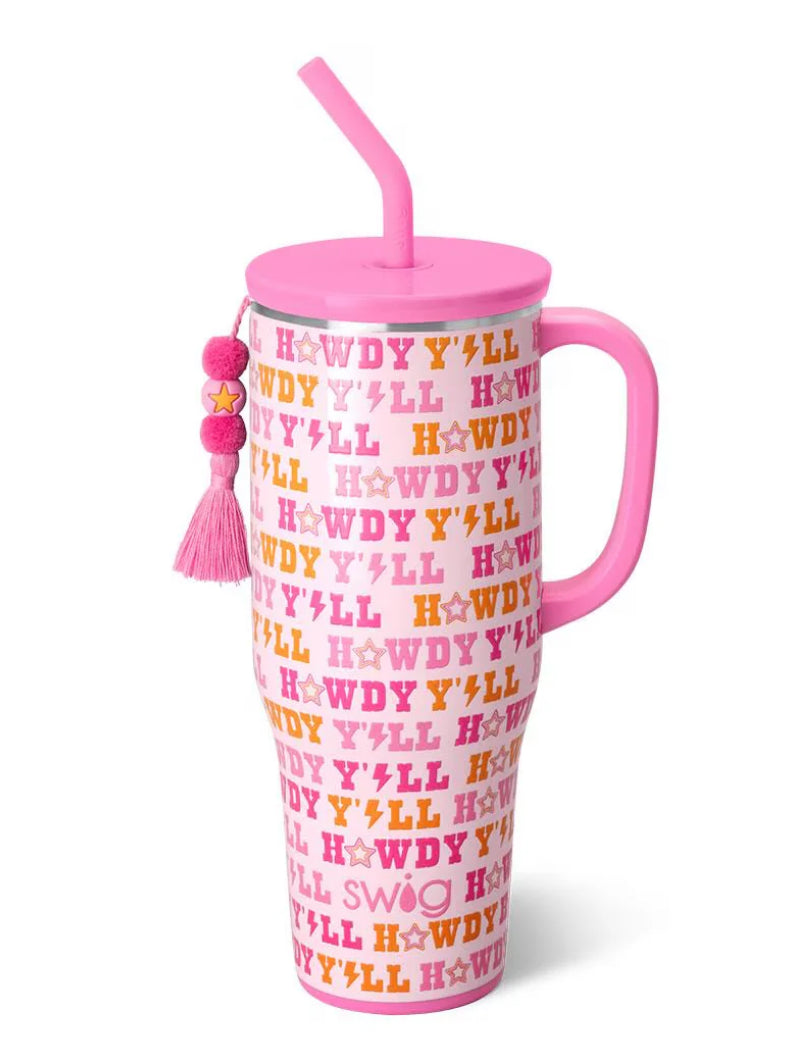 Hydrating has never been easier with our 40oz Insulated Mega Mug! A cup holder-friendly frame, a comfort-grip handle, and a plastic straw with a silicone flexi-tip all come together to create your new favorite Swig.