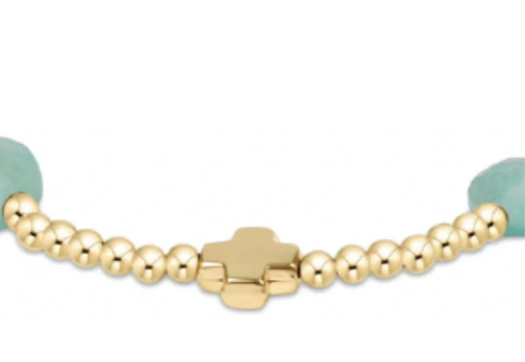 Signature Cross Admire Gold Pattern 3mm Bead Bracelet - Amazonite