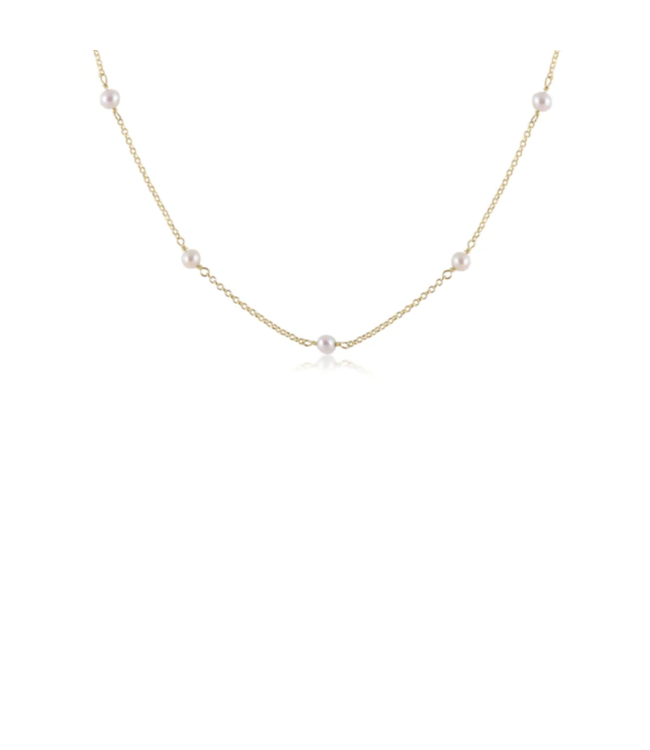 SIMPLICITY 4MM BEAD CHAIN 17" NECKLACE - PEARL/GOLD