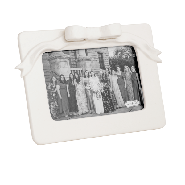 Charming and elegant, this Small Bow Ceramic Frame is the perfect addition to any home or office decor. Crafted from high-quality ceramic, this frame is designed to hold a 4" x 6" photo, showcasing your cherished memories with style. The frame features a beautifully layered ceramic bow, adding a touch of sophistication and whimsy to its design. Its easel back allows for easy display on any tabletop, shelf, or mantel, making it a versatile piece for any room. Made from durable dolomite, this frame ensures long-lasting beauty and functionality. Ideal for gifting or personal use, it effortlessly complements a variety of interior styles, from modern to classic.