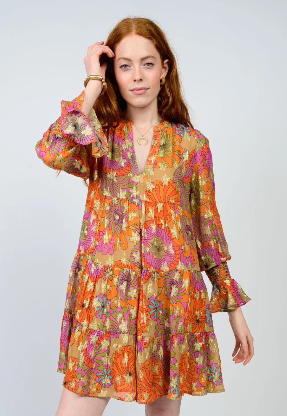 The Ivy Jane 73676 Star Struck Dress features sparkling metallic star accents that add a touch of brilliance to its design. Crafted in a babydoll tiered style, it provides a comfortable and playful silhouette. Perfect for festive occasions or casual outings, this dress offers a fun and stylish look.