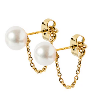 Tessa is a pearl stud that has a gold plated chain and earring back attached to it.