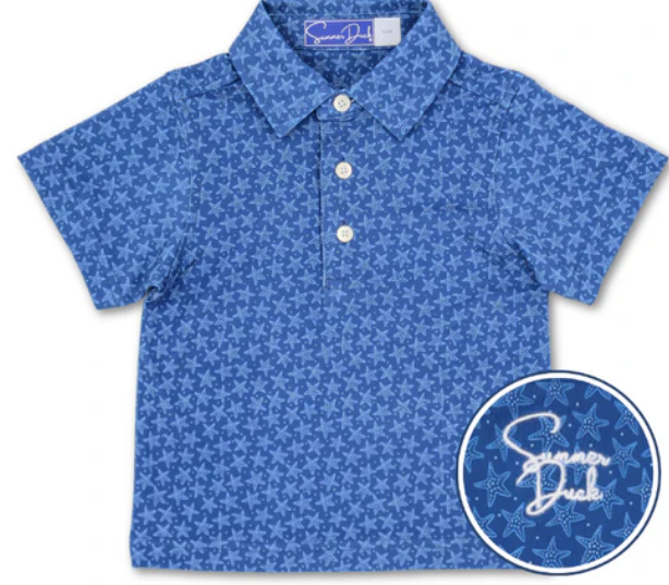 ✔ Ocean-Inspired Style – A fun, nautical starfish print gives this polo a coastal, beach-ready vibe.