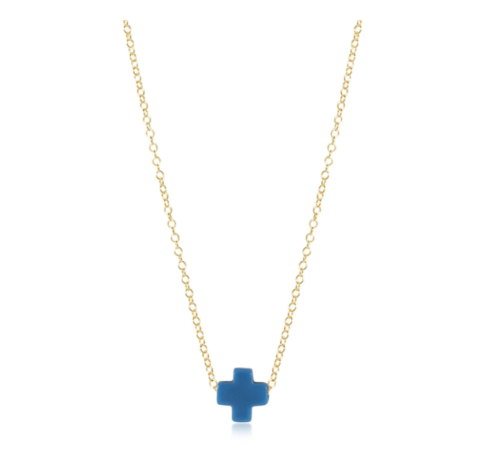 16” NECKLACE GOLD- SIGNATURE CROSS- COBALT