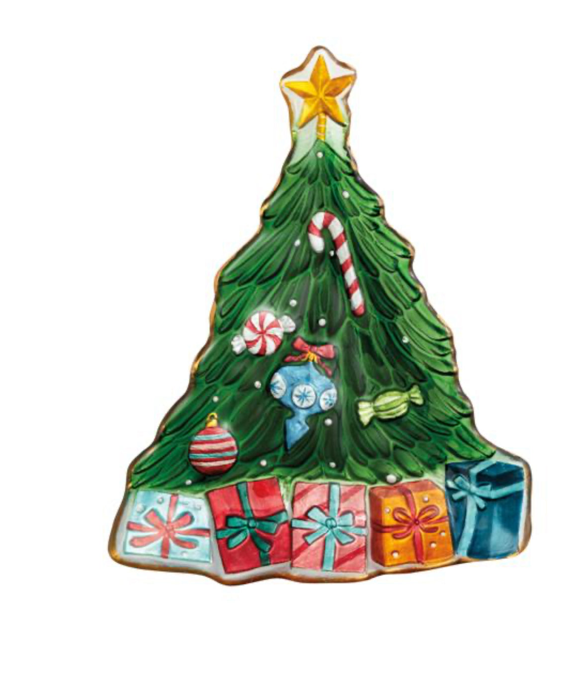 Celebrate the holiday season with this exquisite Christmas Tree Glass Platter, a stunning addition to your festive table setting. Crafted from high-quality glass, this platter is meticulously hand-painted, showcasing intricate details that capture the essence of a beautifully adorned Christmas tree. Measuring 12 inches by 9 3/4 inches, it offers ample space for serving a variety of holiday treats, from cookies and candies to appetizers and desserts. The unique tree shape adds a whimsical touch to your decor, making it a perfect centerpiece for gatherings and celebrations. Durable and elegant, this platter is not only a functional serving piece but also a charming decorative accent that will delight your guests and enhance your holiday ambiance. Ideal for gifting or personal use, it embodies the spirit of the season with its artistic craftsmanship and festive design.