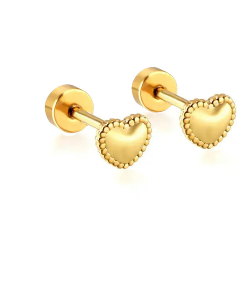 Style Description: Gold heart shape micro-stud. 5mm in size.